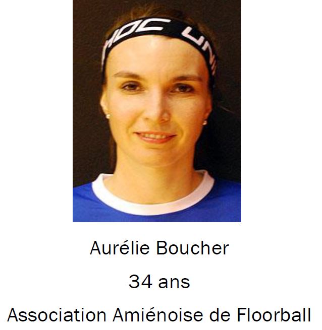 Aurélie Boucher, c’est d’abord une personnalité réfléchie. A la fois discrète et déterminée. Elle apporte à l’équipe une sorte de force tranquille, de stabilité dans le jeu, de sérénité sûrement acquise par son expérience du floorball. Sereine mais coriace lorsqu’elle a la balle ! Très investie dans les instances du floorball, elle l’est tout autant dans l’équipe de France.