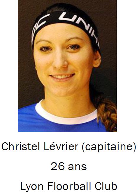 Les années d’expérience de jeu de Christel lui ont apportées une grande sérénité sur le terrain. Sa technique et sa polyvalence sont ses grands atouts, c’est une défenseuse qui n’hésite pas à attaquer : et cela promet en Lettonie ! Toujours à l’écoute des coachs et des joueuses, Christel donne beaucoup à l’équipe, elle en est d’ailleurs le capitaine et ce n’est pas un hasard : elle sait nous communiquer son enthousiasme, la rage de gagner, et est toujours là pour nous rappeler que nous gagnerons en restant solidaires. Pour la petite anecdote, c’est toujours Christel qui lance notre cri de guerre pour que l’on soit toutes à l’unisson : BLEU, blanc, rouge BLEU, blanc, rouge, ALLLLEZ FRANCE !