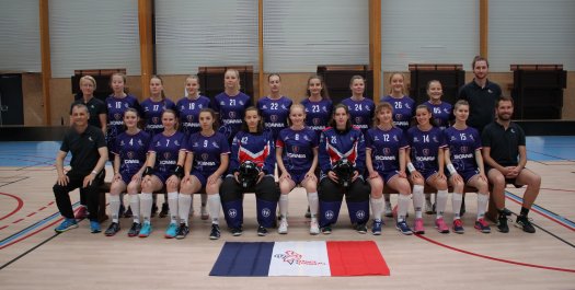Infos et diffusion des matchs ici L’Equipe de France L’Equipe de France est constituée de 20 joueuses évoluant toutes en France et formées ces dernières années dans les clubs français. Elles sont emmenées par leur sélectionneuse principale, Julia Pleimelding, ancienne joueuse de l’Equipe de France. Julia et la Suédoise Sandra Forsmark (aujourd’hui repartie vivre en Suède) ont travaillé pendant deux ans à la constitution et à la préparation de ce collectif plein d’avenir. Voici la liste des 20 Bleuettes qui vont tenter de qualifier la France