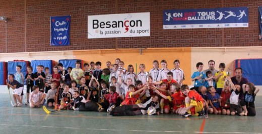 Voilà un week-end qui décuple l’envie et l’énergie à mettre au service du floorball. Ce tournoi de Besançon organisé par la Commission Jeunes de la FFFL et accueilli par les Dragons Bisontins, ponctue une saison charnière qui a définitivement ouvert la voie du développement de notre sport auprès des enfants. Bien sûr, tous les jeunes floorballeurs français n’étaient pas là, ne pouvaient pas être là, pour des raisons géographiques notamment, et il ne faut pas oublier que le floorball chez les enfants ne se limite pas aux clubs du grand Sud-Est. Mais cette saison 2011-2012 est la première en termes d’événements jeunes organisés sous l’égide de la fédération. Il s’agissait de lancer une machine assurément inarretable, osons le dire dès maintenant. Et quel plaisir de voir un tel tournoi que celui de Besançon se dérouler de la meilleure des manières, avec un tel enthousiasme des jeunes pratiquants, et un tel dévouement de la part de tous les accompagnateurs et organisateurs ! Trois catégories étaient concernées : U7-U9 (5 équipes) / U11-U13 (4 équipes) / U15-U17 (3 équipes). Chacune a réuni des équipes françaises et des équipes suisses invitées représentant les clubs de l’UHC Sierre et de l’UHC Avry. Côté résultats, c’est l’UHC Sierre qui remporte le trophée chez les plus jeunes, l’UHC Avry celui de la catégorie intermédiaire, et puis Besançon qui s’adjuge le prix U15-U17. Il reste beaucoup de chemin à parcourir, tous ensemble, pour que le floorball en France trouve la place qu’il mérite auprès des jeunes, en milieu scolaire comme en dehors. Mais les atouts du floorball sont incontestables et désormais nous avançons. Ce tournoi de Besançon est une réussite et un formidable fenêtre ouverte sur notre avenir.