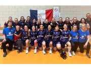 Ce week-end, l’Équipe de France U19 Féminine s’est rendue à Quiévrechain pour participer à l’Open Féminin, organisé par les Grizzlys du Hainaut. Nous tenons à remercier chaleureusement les organisateurs ainsi que tous les bénévoles qui ont contribué à la réussite de cet événement. Nos jeunes Bleues ont eu l’opportunité d’affronter plusieurs équipes françaises et belges de haut niveau. Le premier match, face à l’équipe belge de Strijtem, a démarré difficilement. Malgré une belle réaction en seconde période, elles n’ont pas réussi à inverser la tendance et se sont inclinées de justesse, 3-4. Dans leur second match, nos joueuses ont su rebondir. Opposées à une équipe expérimentée, elles se sont imposées 2-1, retrouvant ainsi une dynamique positive et beaucoup de confiance pour la suite du tournoi. L’après-midi, elles ont rencontré les Renardes de La Hulpe, qui avait terminé première de sa poule et battu Panam United dans la matinée. Ce fut un match intense et agréable à regarder. Le score est resté vierge (0-0) à l’issue du temps réglementaire, mais la séance de tirs au but n’a malheureusement pas souri à nos Bleues. Malgré cette déception, elles se sont rapidement remobilisées pour décrocher la troisième place du tournoi en battant les championnes de France en titre 3-1, un résultat qui témoigne de leur détermination et de leur travail collectif. Malheureusement, ce week-end a été marqué par la blessure de Camille lors du dernier match de poule. Toute l’équipe lui adresse son soutien et espère la voir de retour très bientôt sur le terrain. Le parcours de nos U19 Féminines ne s’arrête pas là. Elles poursuivent leur préparation avec en ligne de mire les qualifications de septembre 2025. D’ici là, nous comptons sur vous, supporters, pour les encourager et les porter vers la victoire ! Crédit photo : V. Nogues |
